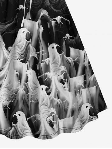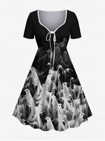 Plus Size Ghost Print Cinched Halloween Dress - Black - 4x