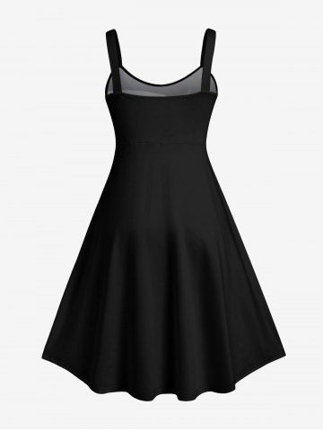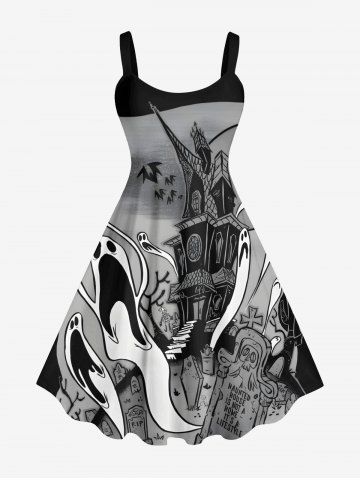 Plus Size Ghost Tombstone Castle Bat Print Halloween Costume A Line Tank Dress - Black - 5x