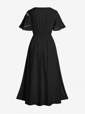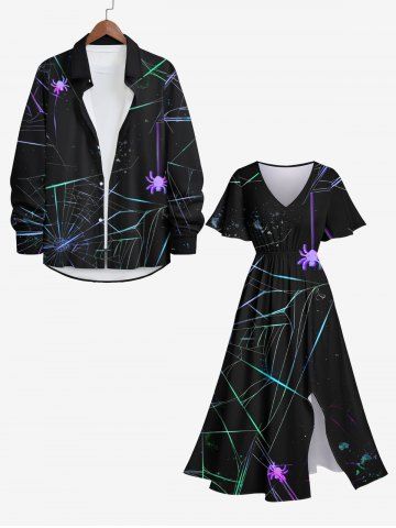 Plus Size Glitter Ombre Spider Web Print Halloween Costume Split Pocket A Line Midi Dress - Black - L