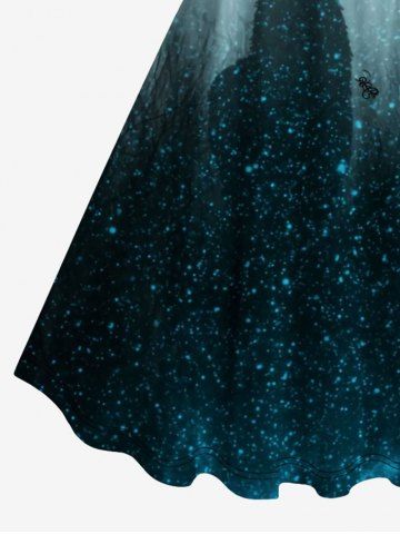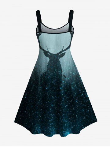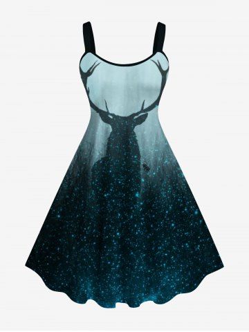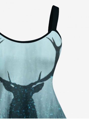 Plus Size Glitter Tree Forest Elk Print Halloween Costume Ombre A Line Tank Dress - Multi-a - 4x
