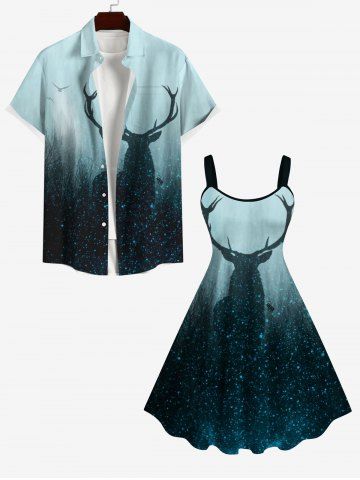 Halloween Dresses > Plus Size Glitter Tree Forest Elk Print Halloween Costume Ombre A Line Tank Dress