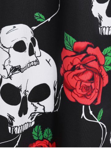 Halloween Dresses > Plus Size Gothic Skulls Rose Printed A Line Sleeveless Dress