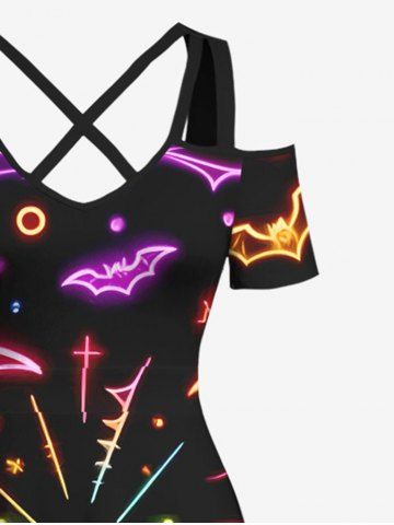 Plus Size Halloween Bat Pumpkin Moon Heart Print Cold Shoulder Crisscross Maxi Dress - Black - 5x