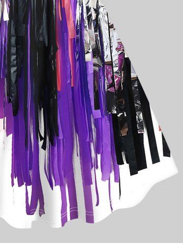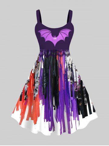 Plus Size Halloween Bat Wing Applique Ribbon Tassel 3D Print Tank Dress - Purple - L