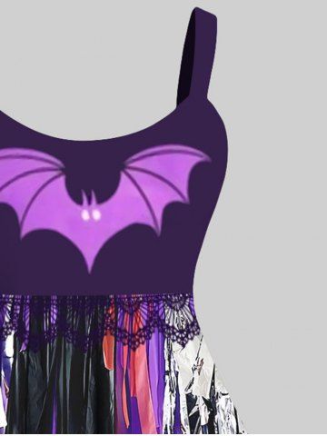Plus Size Halloween Bat Wing Applique Ribbon Tassel 3D Print Tank Dress - Purple - 3x