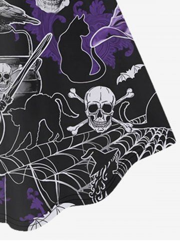 Plus Size Halloween Cat Hat Skull Bird Broom Print Tank Dress - Purple - S