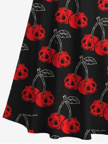 Halloween Dresses > Plus Size Halloween Cherry Skulls Print Cold Shoulder Crisscross Maxi Dress