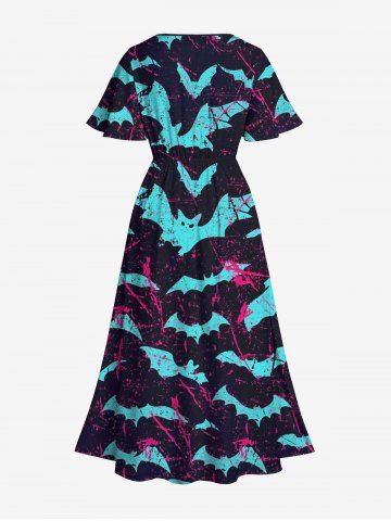 Plus Size Halloween Costume Bat Blood Print Split Midi Dress - Black - Xs