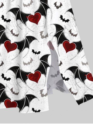 Plus Size Halloween Costume Bat Heart Print Split Midi Dress - White - Xs