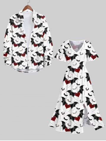 Plus Size Halloween Costume Bat Heart Print Split Midi Dress - White - 5x