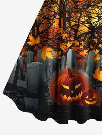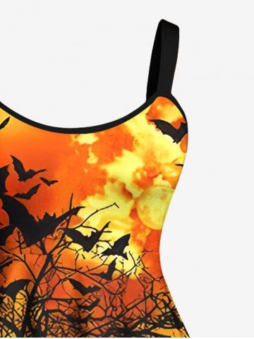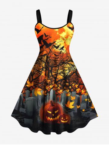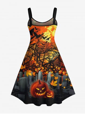 Plus Size Halloween Costume Bat Pumpkin Latern Tree Maple Leaves Tomb Moon Print Tank Dress - Multi-a - L