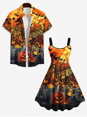 Halloween Dresses > Plus Size Halloween Costume Bat Pumpkin Latern Tree Maple Leaves Tomb Moon Print Tank Dress