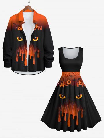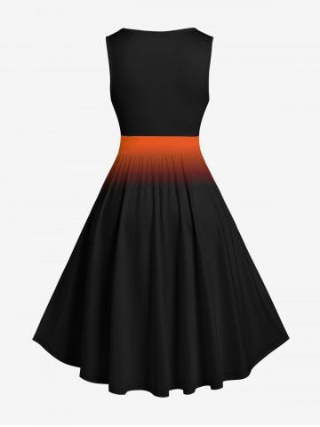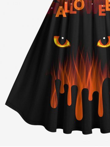 Halloween Dresses > Plus Size Halloween Costume Bat Spider Web Ombre Eyes Flame Colorblock Print 1950s Vintage Dress