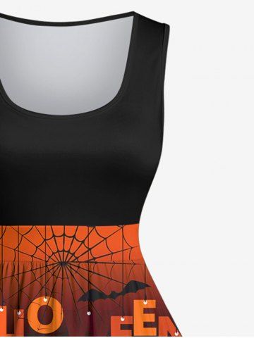 Plus Size Halloween Costume Bat Spider Web Ombre Eyes Flame Colorblock Print 1950s Vintage Dress - Black - 4x