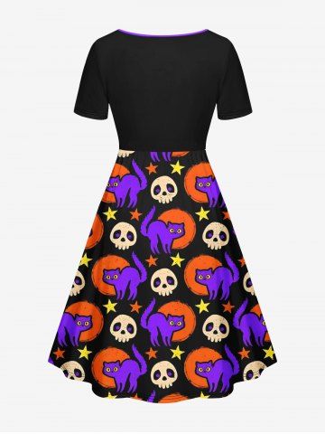 Plus Size Halloween Costume Cute Skull Cat Moon Star Print Cinched Dress - Multi-a - 5x