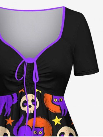 Plus Size Halloween Costume Cute Skull Cat Moon Star Print Cinched Dress - Multi-a - 6x