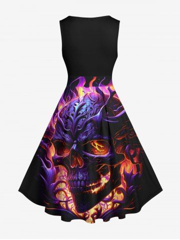 Halloween Dresses > Plus Size Halloween Costume Fire Flame Metallic Skull Print 1950s Vintage Dress