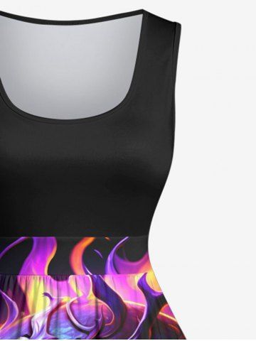 Plus Size Halloween Costume Fire Flame Metallic Skull Print 1950s Vintage Dress - Black - 3x