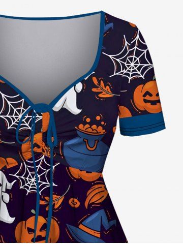 Halloween Dresses > Plus Size Halloween Costume Ghost Pumpkin Hat Spider Web Print Cinched Dress