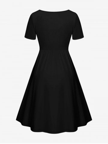 Plus Size Halloween Costume Ghost Pumpkin Print Cinched Dress - Black - 4x