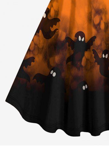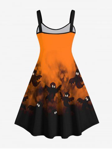 Plus Size Halloween Costume Ghost Wing Colorblock PU Leather Stripe 3D Print Tank Dress - Orange - Xs