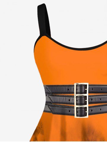 Plus Size Halloween Costume Ghost Wing Colorblock PU Leather Stripe 3D Print Tank Dress - Orange - 4x