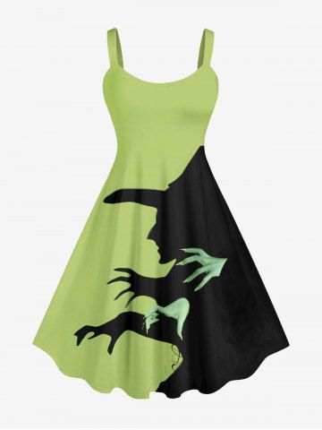 Plus Size Halloween Costume Hat Hands Shadow Print Tank Dress - Green - S