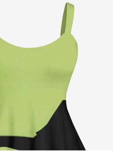 Plus Size Halloween Costume Hat Hands Shadow Print Tank Dress - Green - 1x