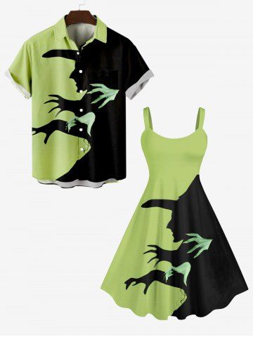 Plus Size Halloween Costume Hat Hands Shadow Print Tank Dress - Green - 5x