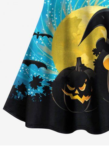 Plus Size Halloween Costume Hat Pumpkin Bat Moon Star Maple Leaf Print Crisscross Cami Dress - Multi-a - M