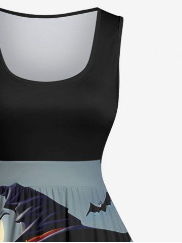 Halloween Dresses > Plus Size Halloween Costume Hat Pumpkin Bat Tree Moon Print 1950s Vintage Dress