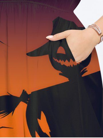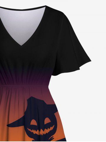 Plus Size Halloween Costume Hat Pumpkin Scarecrow Print Split Midi Dress - Black - 5x