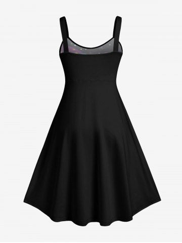 Plus Size Halloween Costume Hat Skulls Skeleton Flowers Pumpkin Print Tank Dress - Black - 2x