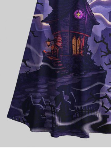 Plus Size Halloween Costume Moon Bat Castle Tree Print Cold Shoulder Crisscross Maxi Dress - Multi-a - 6x
