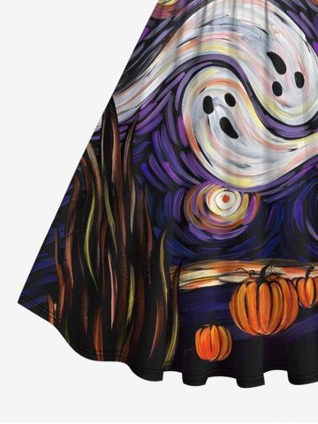 Plus Size Halloween Costume Oil Painting Ghost Pumpkin Print 1950s Vintage Dress - Black - M