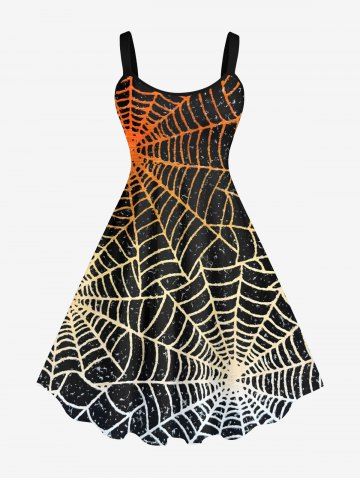 Halloween Dresses > Plus Size Halloween Costume Ombre Spider Web Print Tank Dress
