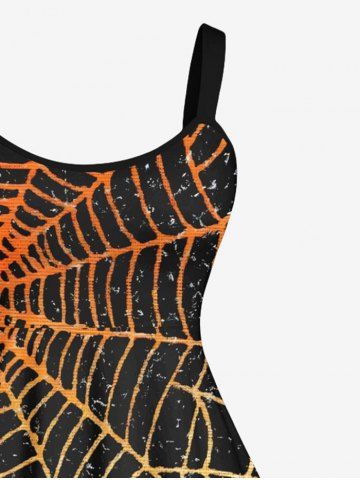 Plus Size Halloween Costume Ombre Spider Web Print Tank Dress - Black - 6x