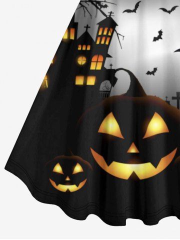 Plus Size Halloween Costume Pumpkin Bat Moon Tree Castle Print Tank Dress - Black - L