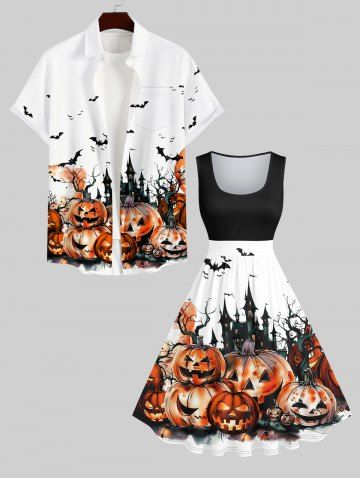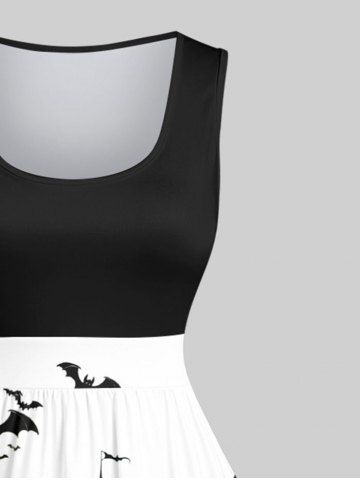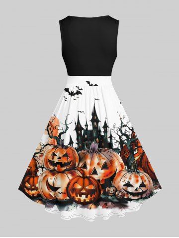 Halloween Dresses > Plus Size Halloween Costume Pumpkin Bat Tree Castle Print 1950s Vintage Dress