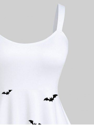 Plus Size Halloween Costume Pumpkin Bat Tree Castle Print Tank Dress - White - 3x
