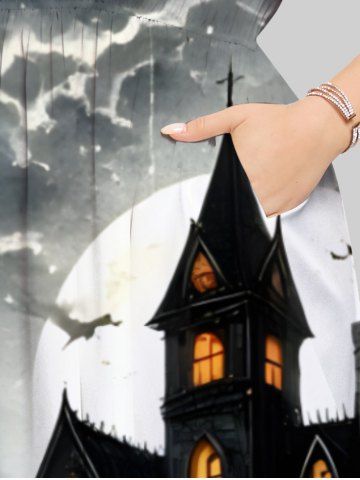 Halloween Dresses > Plus Size Halloween Costume Pumpkin Cross Bat Tree Casstle Cloud Moon Print Split Midi Dress
