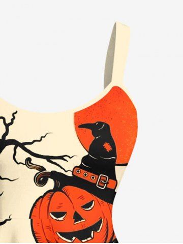 Plus Size Halloween Costume Pumpkin Cross Owl Tree Tombstone Print Tank Dress - Orange - Xxs