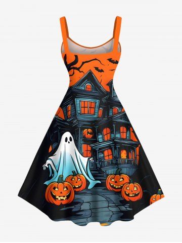 Halloween Dresses > Plus Size Halloween Costume Pumpkin Ghost Bat Castle Print Tank Dress