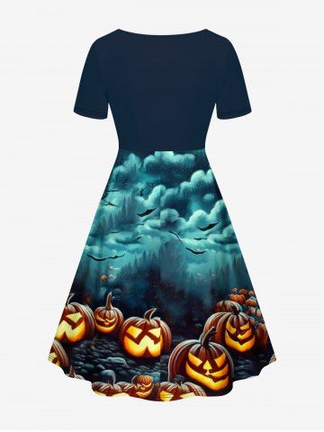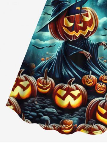 Plus Size Halloween Costume Pumpkin Hat Wizard Bat Cloud Print Cinched Dress - Multi-a - 3x