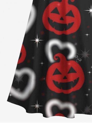Plus Size Halloween Costume Pumpkin Heart Star Glitter 3D Print Cold Shoulder Crisscross Maxi Dress - Black - S