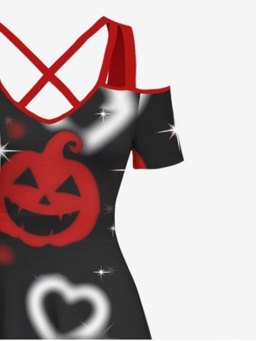 Halloween Dresses > Plus Size Halloween Costume Pumpkin Heart Star Glitter 3D Print Cold Shoulder Crisscross Maxi Dress