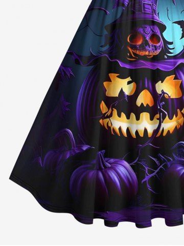 Halloween Dresses > Plus Size Halloween Costume Pumpkin Lantern Hat Skull Tree Print 1950s Vintage Dress