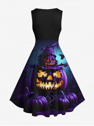 Halloween Dresses > Plus Size Halloween Costume Pumpkin Lantern Hat Skull Tree Print 1950s Vintage Dress