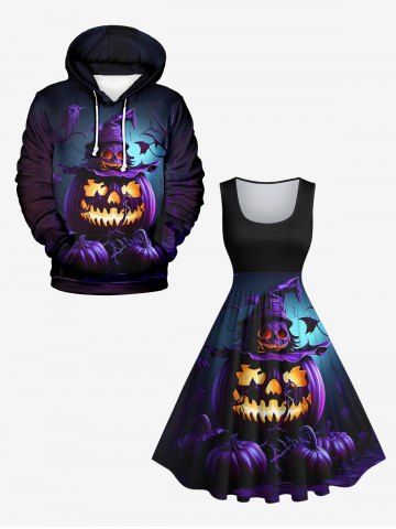 Halloween Dresses > Plus Size Halloween Costume Pumpkin Lantern Hat Skull Tree Print 1950s Vintage Dress