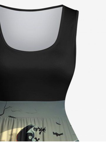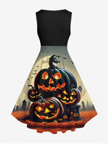 Plus Size Halloween Costume Pumpkin Latern Bat Moon Tree Print 1950s Vintage Dress - Multi-a - S